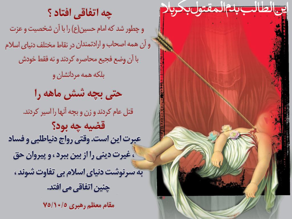 «من در میان شما دو امانت نفیس و گرانبها میگذارم یکی کتاب خدا قرآن و دیگری عترت و اهل بیت خودم. مادام که شما به این دو دست بیازید هرگز گمراه نخواهید شد و این دو یادگار من هیچ گاه از هم جدا نمیشوند.»